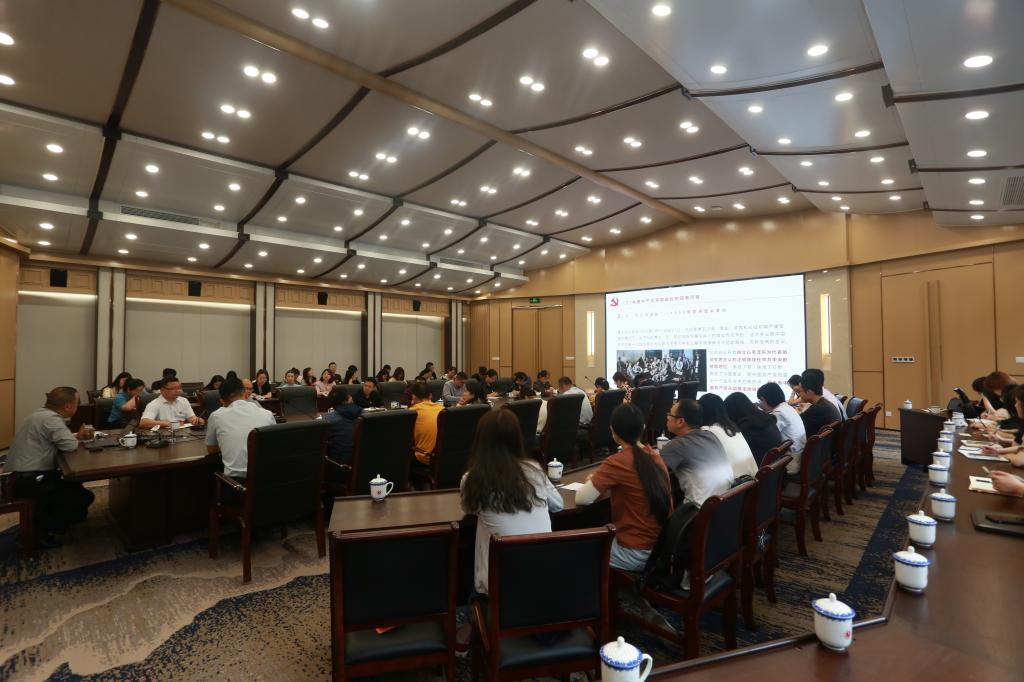 夏跃平以“没有共产党就没有新中国,只有社会主义才能救中国”作为切入点,从“为什么中国共产党能从小到大,从弱到强,从没有政权到取得政权,让一个积弱积贫山河破碎的国家成为如今GDP雄踞世界第二的国家,全国人民脱贫致富,实现中华民族千年之梦想?”“这其中究竟有什么奥秘?成功的经验在何处?”“这些成功的经验对我们未来的发展有何启示?”三个问题开始牵引,结合“事物的发展一定是历史的必然与逻辑的必然相结合的产物”“科学给人知识,历史给人智慧”“进的方向要从走过的路中去寻找”三个观点的哲理分析入手,深刻阐述了“中国共产党的诞生”“中国共产党夺取政权的艰难历程”“探索和平建设社会主义国家时期”“改革开放,走中国特色的社会主义道路”四个不同阶段党史的重点和内涵,通过“八七会议”“遵义会议”“西安事变”“重庆谈判”“打过长江去”“抗美援朝”等重要历史转折点的深入剖析,使大家充分感受到了党在坚苦卓绝历程中所彰显的胸怀与格局、乐观与智慧、奋斗与精神。夏跃平指出,中国共产党正是因为拥有坚强的领导核心,能够与时俱进、自我革新,坚持实事求是、坚定理想信念,制定正确的政策和策略,保持优良的工作作风,才能成就今日伟业。