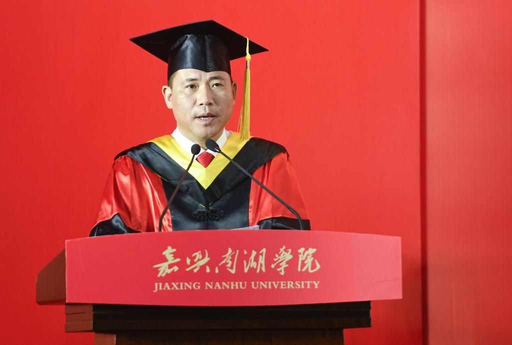 机建系党总支书记刘青松教授作为教师代表发言,向全体毕业生送上祝福。毕业生代表金融N174班赖忠兴同学在发言中表达了对母校和恩师的感激之情。