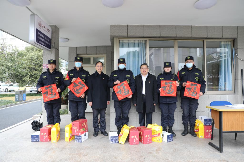 1月30日上午,嘉兴市政协副主席、校党委书记盛付祥,副校长李泉明一行走访慰问了寒假留校学生及在校值班的一线工作人员,向大家致以节日问候和新春祝福。相关职能部门负责人参加慰问活动。
