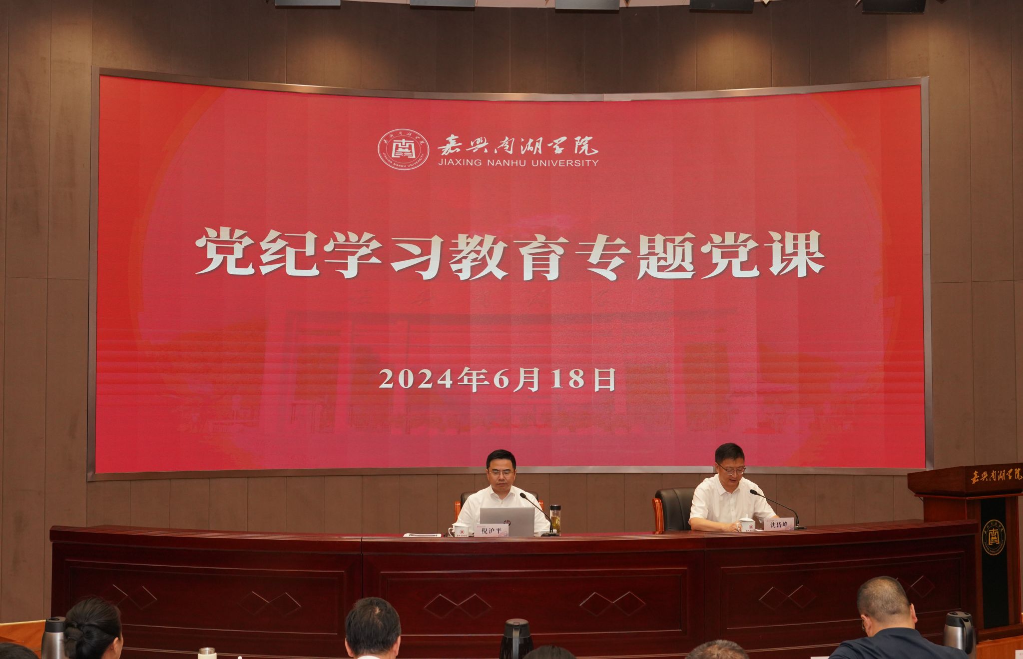 根据省委、市委和学校党纪学习教育工作部署安排,6月18日下午,校党委书记倪沪平围绕“全面从严治党”主题作党纪学习教育专题党课。党委副书记沈岱峰主持会议。