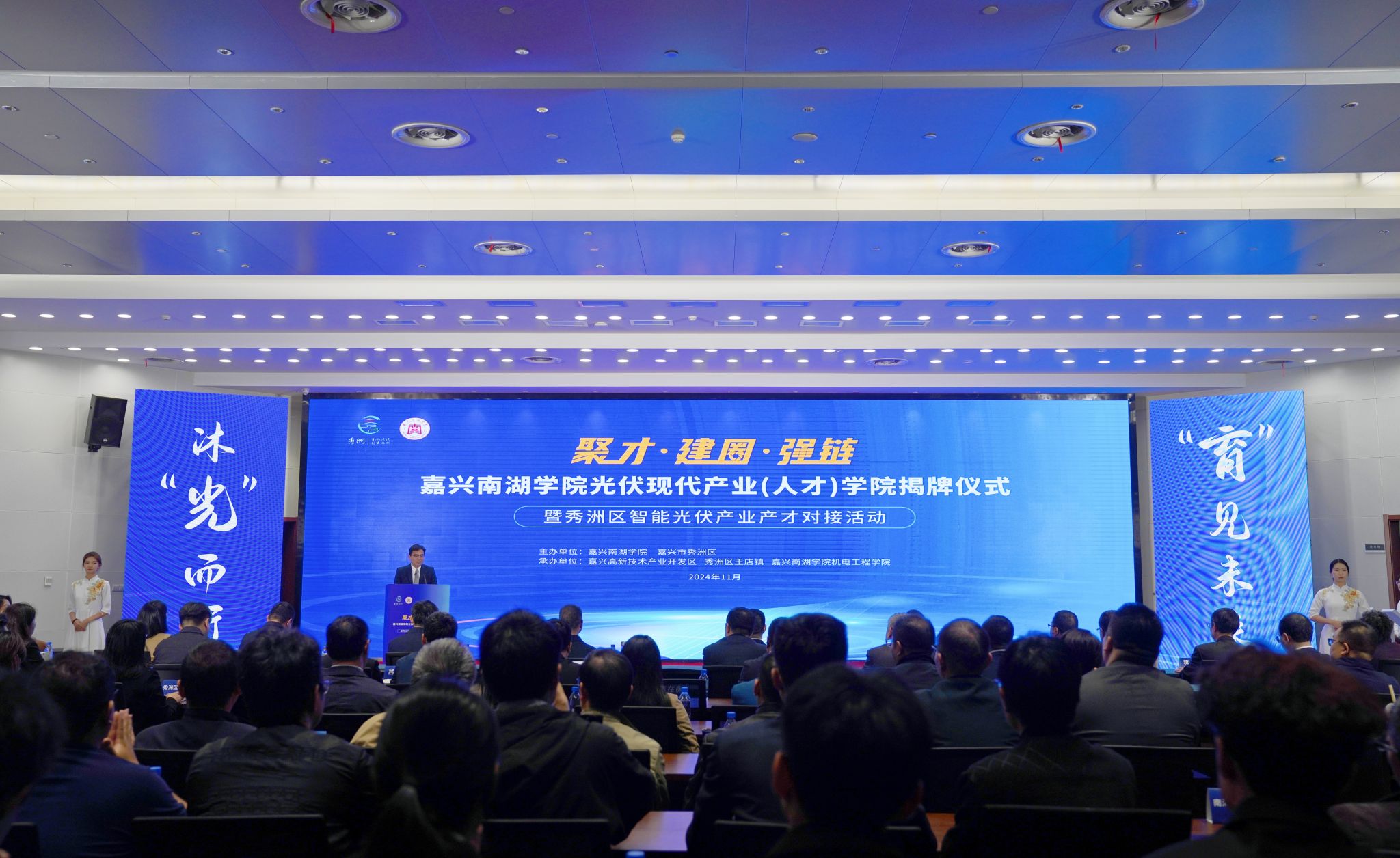 活动现场,学校与秀洲区人民政府签订共建光伏(人才)学院合作协议,并为光伏(人才)学院揭牌。同时还颁发了校外导师代表聘书和学生代表录取通知书。