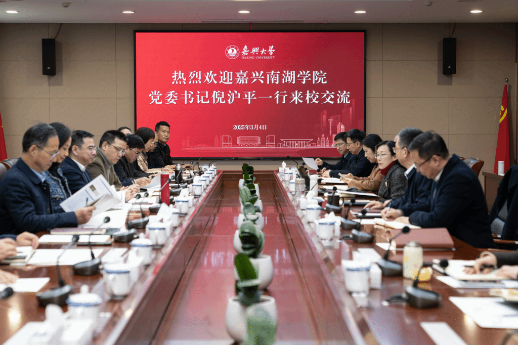 3月4日下午,校党委书记倪沪平,校长、党委副书记贾文胜带队,校领导柯羽、蒋文波、李泉明、赵渊、沈岱峰、庄应强一行赴嘉兴大学调研交流。嘉兴大学校领导沈希、陈新友、张琦、王立玮、陈立力出席座谈会。