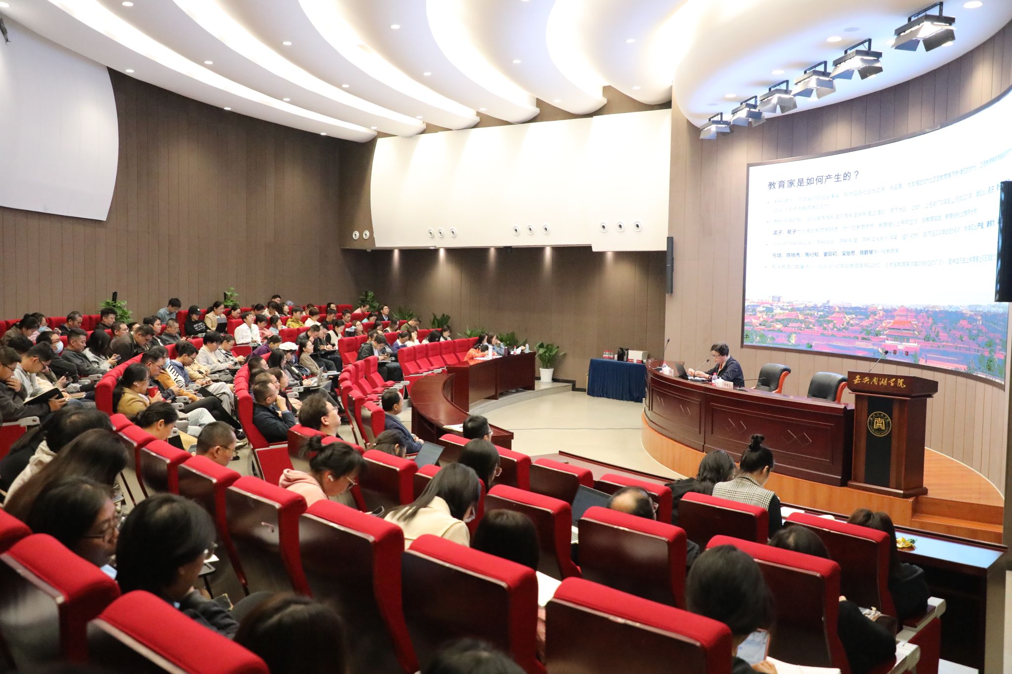 钱教授从教师要具有教育家精神的职业、专业、志业等“三业”入手,通过生动鲜活的案例深刻解读了教育家精神,指出回答世界的时代之问、中国的时代之问、教育的时代之问都需要教育家和教育家精神,强调了建设高素质专业化的教师队伍需要的六个方面基本素养,指出教育要回归其真正的初心,勉励大家用心做教育,真心对学生,每一个教师不一定都能成为教育家,但都能拥有教育家精神,给参会教师带来一场教育家精神的洗礼。